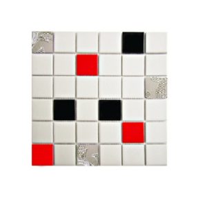 Serabella Porcelain Mosaic 5×5 cm PM-5030 White / Red / Flower Platin